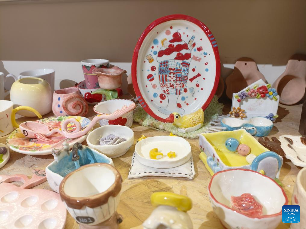 This photo taken on April 16, 2026 shows handicrafts made by customers at a handicraft store in Taiyuan, north China's Shanxi Province. (Xinhua/Chen Zhihao)