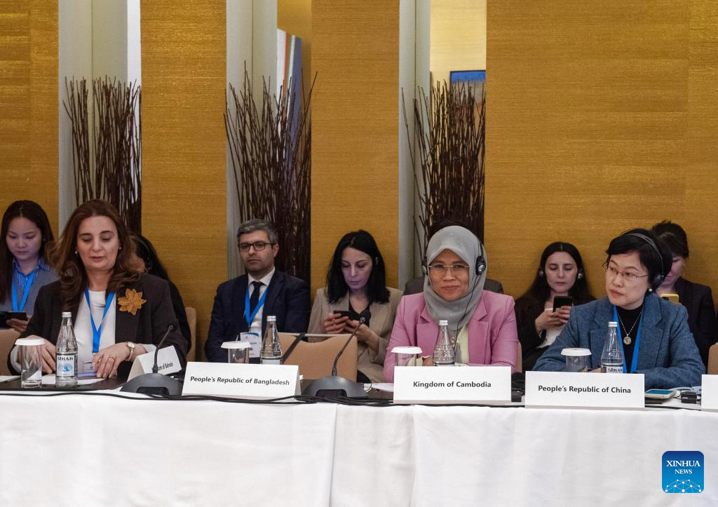 Shi Xin (1st R), Chinese representative to the Women Council of the Conference on Interaction and Confidence Building Measures in Asia (CICA), attends the first meeting of the CICA Women Council, in Baku, Azerbaijan, April 14, 2026. The first meeting of the CICA Women Council was held on Tuesday in Baku, marking the official launch of this newly established advisory body. (Xinhua/Chen Junfeng)