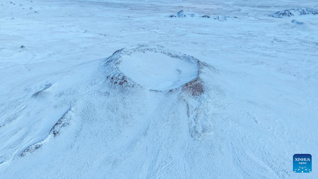 An aerial drone photo taken on April 10, 2026 shows a view of the Bamoqongzong extinct volcanic cluster area in the Changtang National Nature Reserve, southwest China's Xizang Autonomous Region. The Bamoqongzong extinct volcanic cluster is located deep within the Changtang National Nature Reserve, at an average elevation of approximately 5,000 meters. (Photo by Liang Chunning/Xinhua)