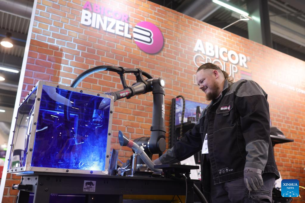 The four-day event, focusing on welding and cutting, smart maintenance, industrial digitalization, and logistics, will conclude here on Friday. (Photo by Zeljko Stevanic/Xinhua)