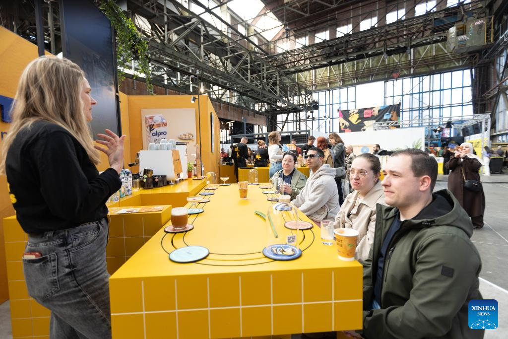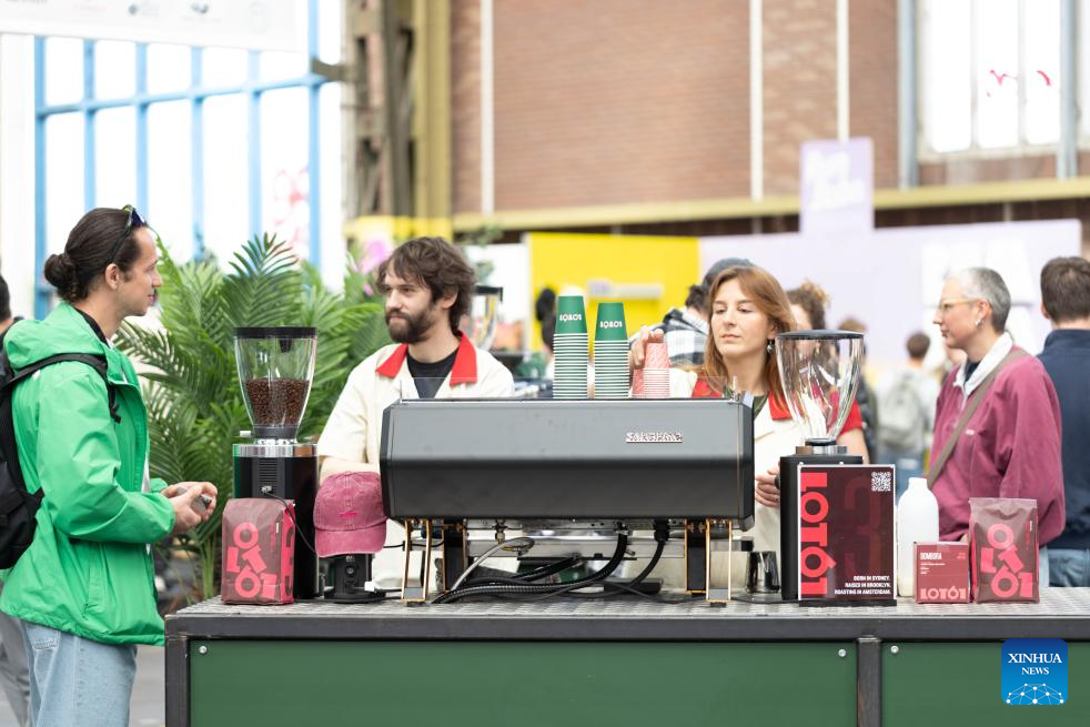 People visit the Amsterdam Coffee Festival in Amsterdam, the Netherlands, April 16, 2026. The three-day festival will last until April 18, 2026. (Photo by Sylvia Lederer/Xinhua)