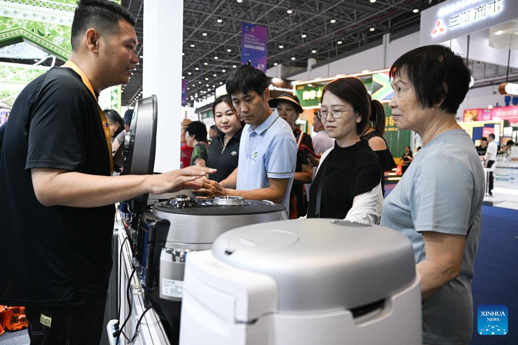 An exhibitor introduces South Korean-made rice cookers to visitors at the sixth China International Consumer Products Expo (CICPE) in Haikou, south China's Hainan Province, April 16, 2026. As a major event showcasing the Hainan Free Trade Port (FTP) after it fully launched island-wide special customs operations in December last year, the sixth China International Consumer Products Expo (CICPE) kicked off on Monday in Haikou, capital of south China's Hainan Province, attracting more than 3,400 brands from over 60 countries and regions.
