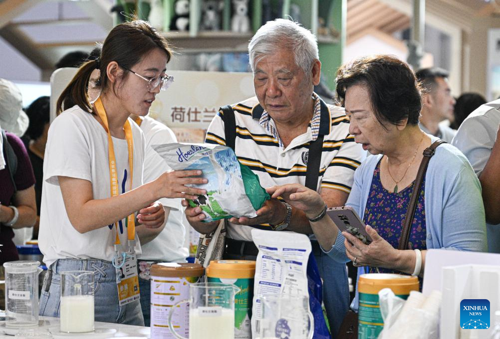 Visitors learn about milk powder from New Zealand during the sixth China International Consumer Products Expo (CICPE) in Haikou, south China's Hainan Province, April 16, 2026. As a major event showcasing the Hainan Free Trade Port (FTP) after it fully launched island-wide special customs operations in December last year, the sixth China International Consumer Products Expo (CICPE) kicked off on Monday in Haikou, capital of south China's Hainan Province, attracting more than 3,400 brands from over 60 countries and regions.