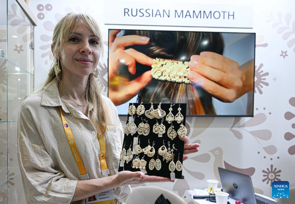 An exhibitor displays handicrafts from Russia during the sixth China International Consumer Products Expo (CICPE) in Haikou, south China's Hainan Province, April 16, 2026. As a major event showcasing the Hainan Free Trade Port (FTP) after it fully launched island-wide special customs operations in December last year, the sixth China International Consumer Products Expo (CICPE) kicked off on Monday in Haikou, capital of south China's Hainan Province, attracting more than 3,400 brands from over 60 countries and regions.