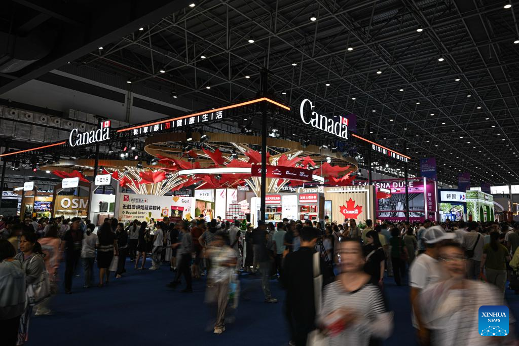 This photo taken on April 16, 2026 shows a view of the pavilion of Canada, guest of honor of the sixth China International Consumer Products Expo (CICPE), in Haikou, south China's Hainan Province. As a major event showcasing the Hainan Free Trade Port (FTP) after it fully launched island-wide special customs operations in December last year, the sixth China International Consumer Products Expo (CICPE) kicked off on Monday in Haikou, capital of south China's Hainan Province, attracting more than 3,400 brands from over 60 countries and regions.
