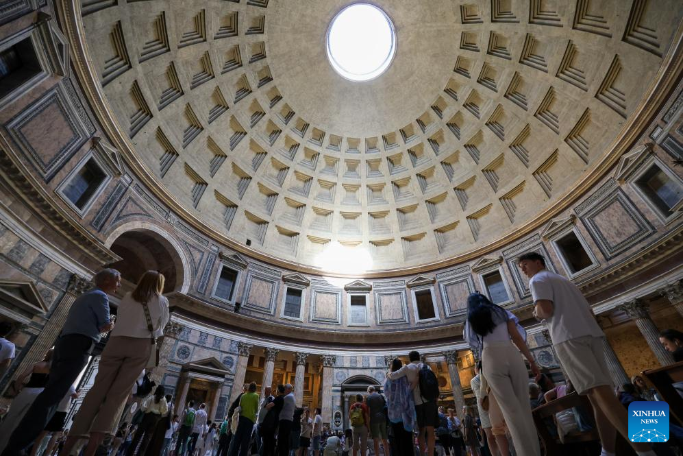 Tourists visit the Pantheon in Rome, Italy, April 17, 2026. According to a recent announcement by Italy's Ministry of Culture, the entry fee for tourists visiting the Pantheon in Rome will rise from 5 euros to 7 euros, with the change taking effect on July 1, 2026. (Xinhua/Li Jing)