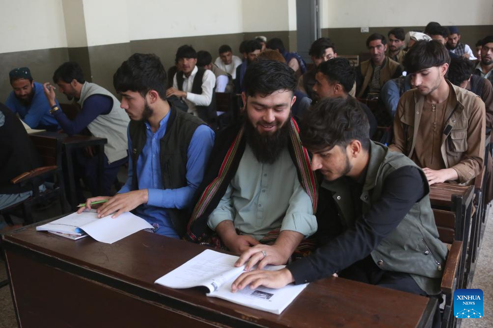 Students attend a Chinese language class at Nangarhar University in Jalalabad, Nangarhar province, Afghanistan, April 12, 2026. Under the framework of Afghanistan's Confucius Institute, a Chinese language course was established at Nangarhar University in 2018. Since then, it has provided opportunities for more than 130 Afghan youth to learn Chinese.(Photo by Saifurahman Safi/Xinhua)