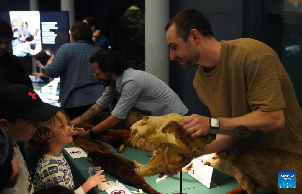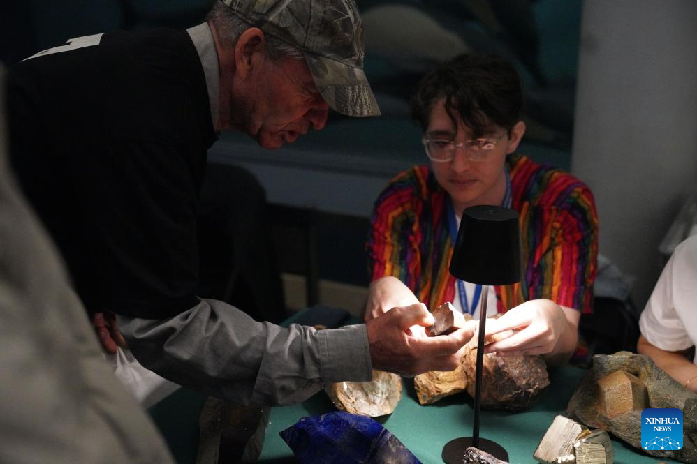 Children visit a specimen identification station during a festival celebrating the upcoming Earth Day at the American Museum of Natural History in New York, the United States, on April 18, 2026. An all-ages festival titled Earthfest was held at the American Museum of Natural History in New York on Saturday to celebrate the upcoming Earth Day, an annual event on April 22, with hands-on activities, science trivia, specimen identification stations, and more. (Xinhua/Zhang Fengguo)