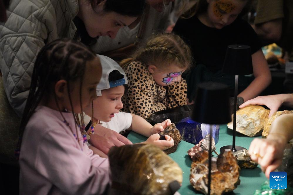 Children observe specimens during a festival celebrating the upcoming Earth Day at the American Museum of Natural History in New York, the United States, on April 18, 2026. An all-ages festival titled Earthfest was held at the American Museum of Natural History in New York on Saturday to celebrate the upcoming Earth Day, an annual event on April 22, with hands-on activities, science trivia, specimen identification stations, and more. (Xinhua/Zhang Fengguo)