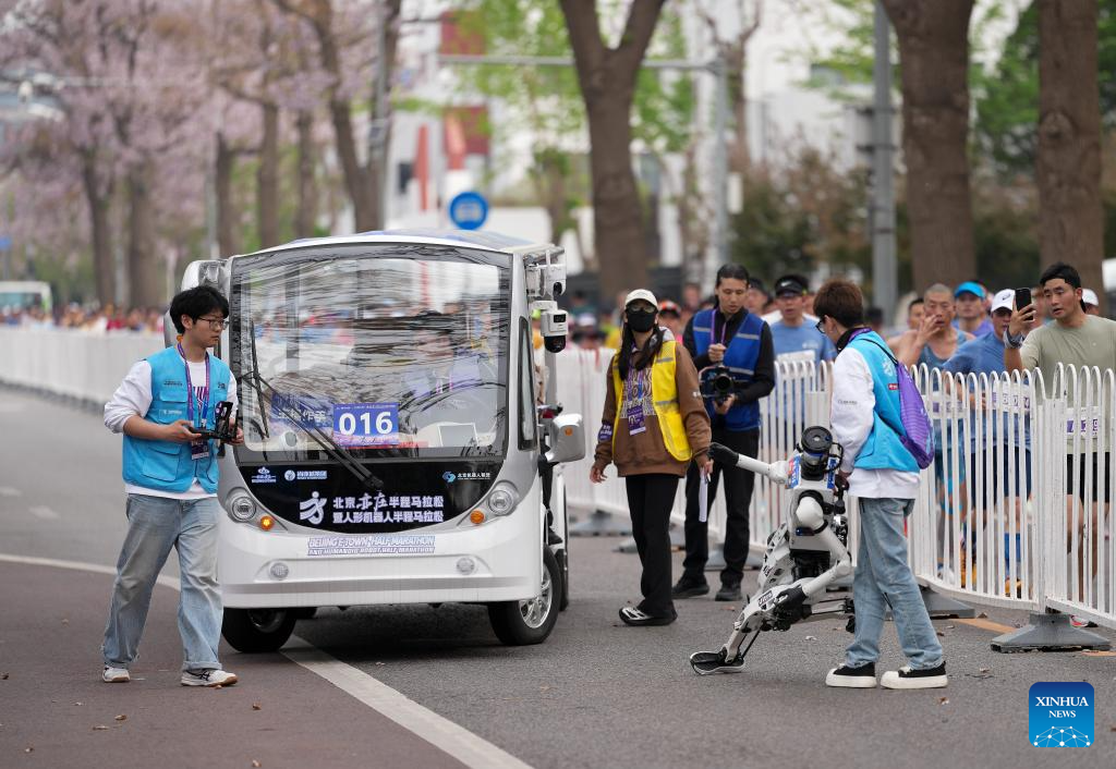 BEIJING, April 19 (Xinhua) -- Humanoid robot named "Flash" from Shenzhen Honor Smart Technology Development Co., Ltd. claimed victory at the 2026 Beijing E-Town half-marathon with a time of 50 minutes and 26 seconds in autonomous navigation on Sunday, beating the human world record of 57:20.