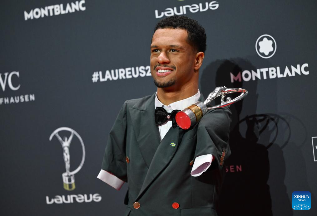 Gabriel Araujo poses with the Laureus World Sportsperson of the Year with a Disability Award during the 2026 Laureus World Sports Awards ceremony in Madrid, Spain, April 20, 2026. (Xinhua/Cheng Min)