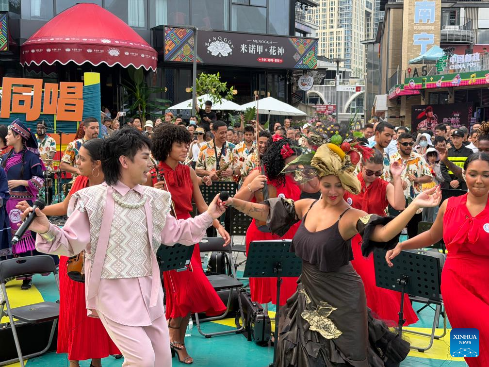 NANNING, April 21 (Xinhua) -- A Chinese folk song echoed across the stage, its melody carrying through the air. Drawn in by the rhythm, Brazilian musicians began to dance, while Chinese participants stepped closer to the stage. Within moments, a circle formed, and the crowd swayed together to the same beat.