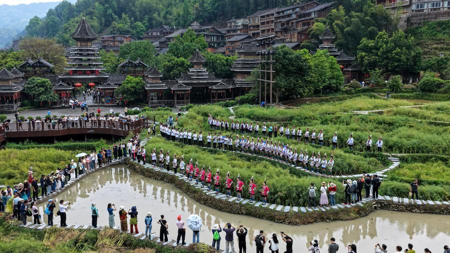 Tourists enjoy a lantern parade in Zhaoxing Dong Village of Liping County, southwest China's Guizhou Province, April 18, 2026. (Photo by Wu Guanghui/Xinhua)An aerial drone photo taken on April 20, 2026 shows a view of Zhaoxing Dong Village of Liping County, southwest China's Guizhou Province. (Photo by Wu Guanghui/Xinhua)A foreign tourist visits Zhaoxing Dong Village in Liping County, southwest China's Guizhou Province, April 19, 2026. (Photo by Long Jianrui/Xinhua)Tourists take photos at a cafe in Zhaoxing Dong Village of Liping County, southwest China's Guizhou Province, April 20, 2026. (Xinhua/Yang Wenbin)An aerial drone photo taken on April 18, 2026 shows tourists enjoying a performance in Zhaoxing Dong Village of Liping County, southwest China's Guizhou Province. (Photo by Wu Guanghui/Xinhua)An aerial drone photo taken on April 20, 2026 shows singers from the Dong ethnic group performing Dong Grand Song for visitors in Zhaoxing Dong Village of Liping County, southwest China's Guizhou Province. (Photo by Wu Guanghui/Xinhua)Tourists try indigo dyeing, an intangible cultural heritage, in Zhaoxing Dong Village of Liping County, southwest China's Guizhou Province, April 20, 2026. (Xinhua/Liu Xu)A girl from the Dong ethnic group arranges cups at a homestay in Zhaoxing Dong Village of Liping County, southwest China's Guizhou Province, April 20, 2026. (Xinhua/Liu Xu)Local residents welcome guests in Zhaoxing Dong Village of Liping County, southwest China's Guizhou Province, March 23, 2026. (Xinhua/Yang Wenbin)