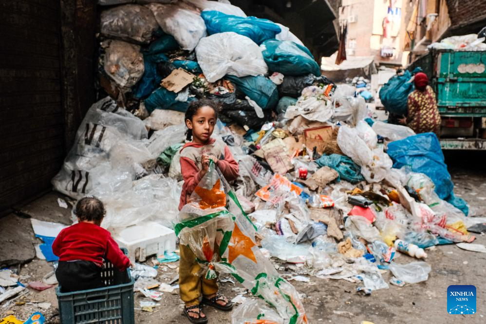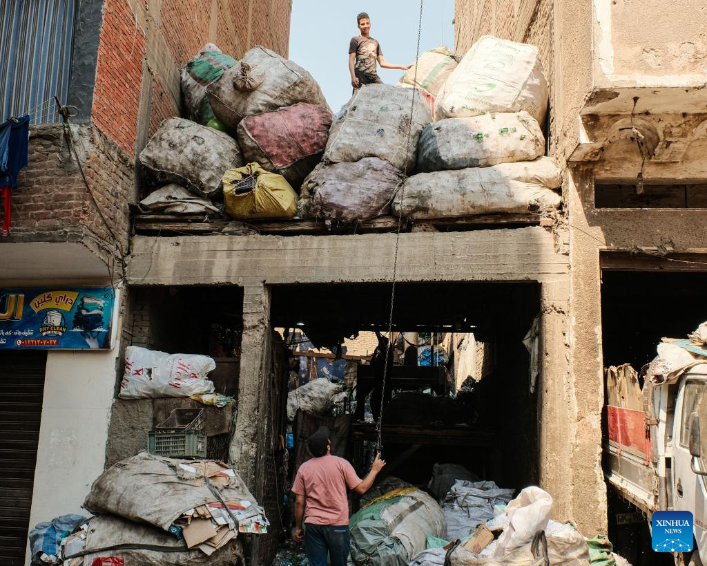 People recycle garbage at Manshiyat Naser, also known as Garbage City, in Cairo, Egypt, on April 21, 2026.(Xinhua/Xin Mengchen)