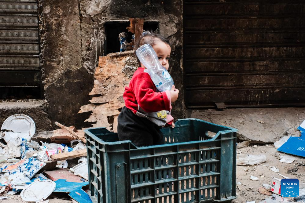 A child is seen at Manshiyat Naser, also known as Garbage City, in Cairo, Egypt, on April 21, 2026.(Xinhua/Xin Mengchen)