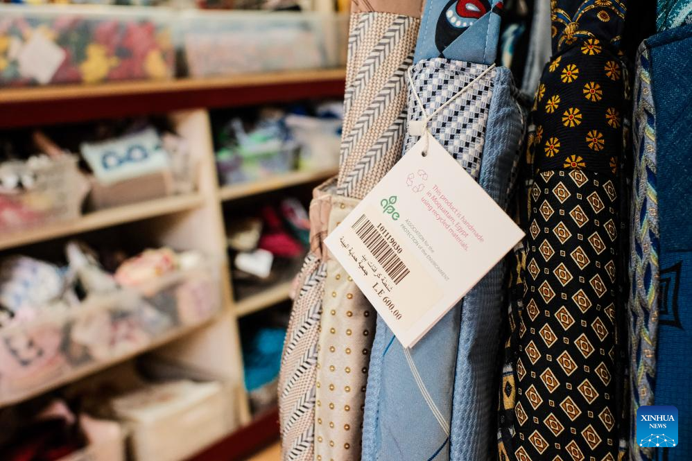 This photo taken on April 21, 2026 shows products made from recycled materials at a workshop in Manshiyat Naser, also known as Garbage City, in Cairo, Egypt. (Xinhua/Xin Mengchen)