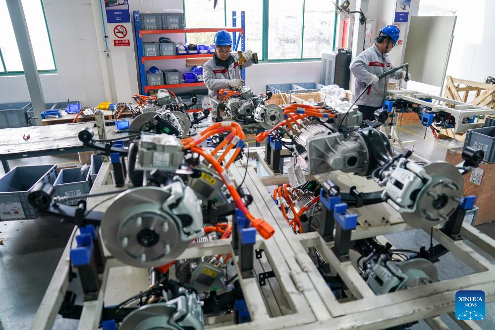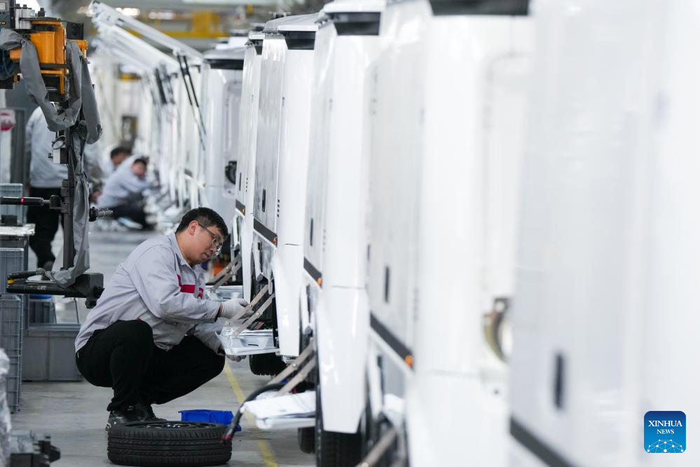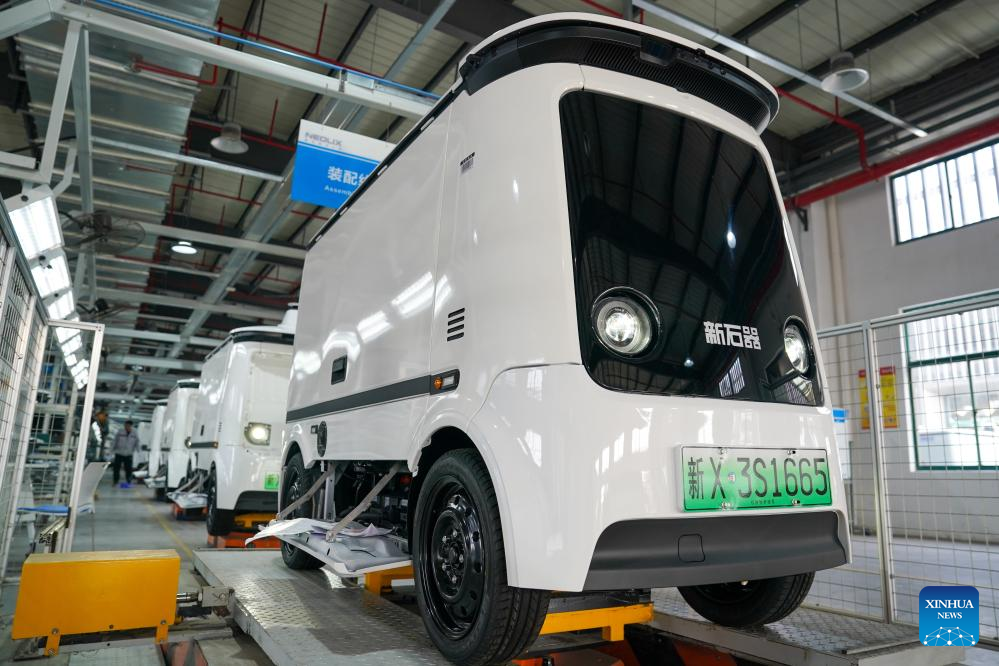 This photo taken on March 25, 2026 shows an autonomous vehicle production line of Neolix, an autonomous vehicle manufacturer, in Yancheng, east China's Jiangsu Province. In recent years, Jiangsu has focused on developing new quality productive forces, pursuing high-end, intelligent and globalized development, using advanced manufacturing to power high-quality economic growth.