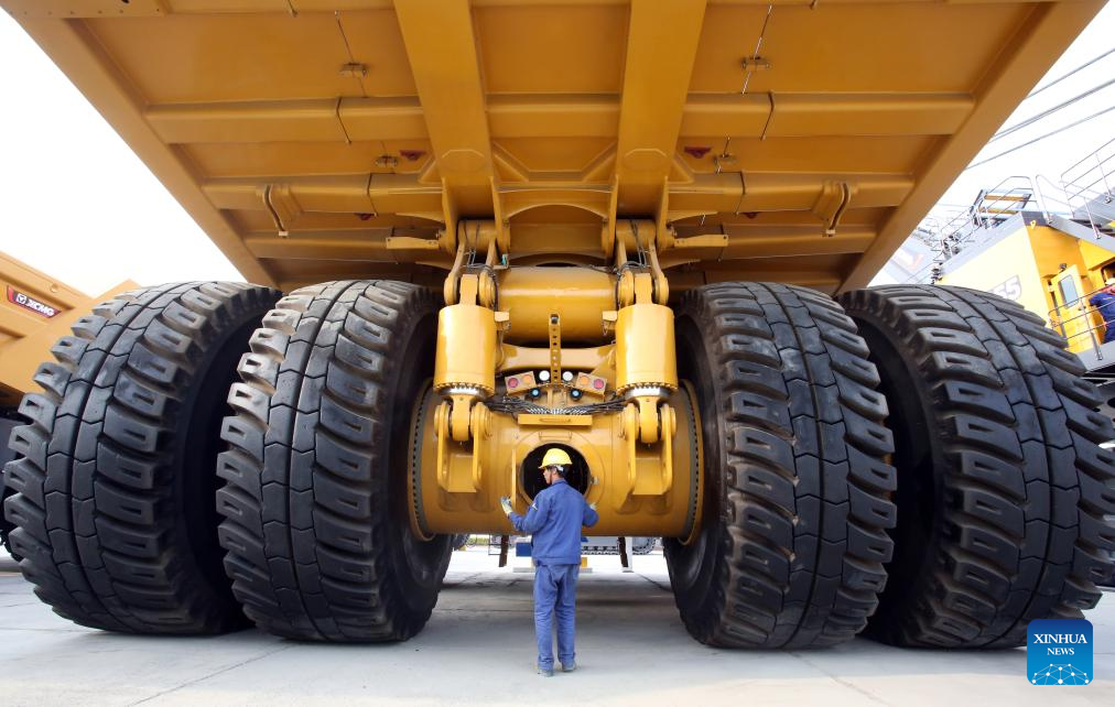 A worker checks a mining truck at Xuzhou Construction Machinery Group Co., Ltd. (XCMG) in Xuzhou City, east China's Jiangsu Province, on March 25, 2026. In recent years, Jiangsu has focused on developing new quality productive forces, pursuing high-end, intelligent and globalized development, using advanced manufacturing to power high-quality economic growth.