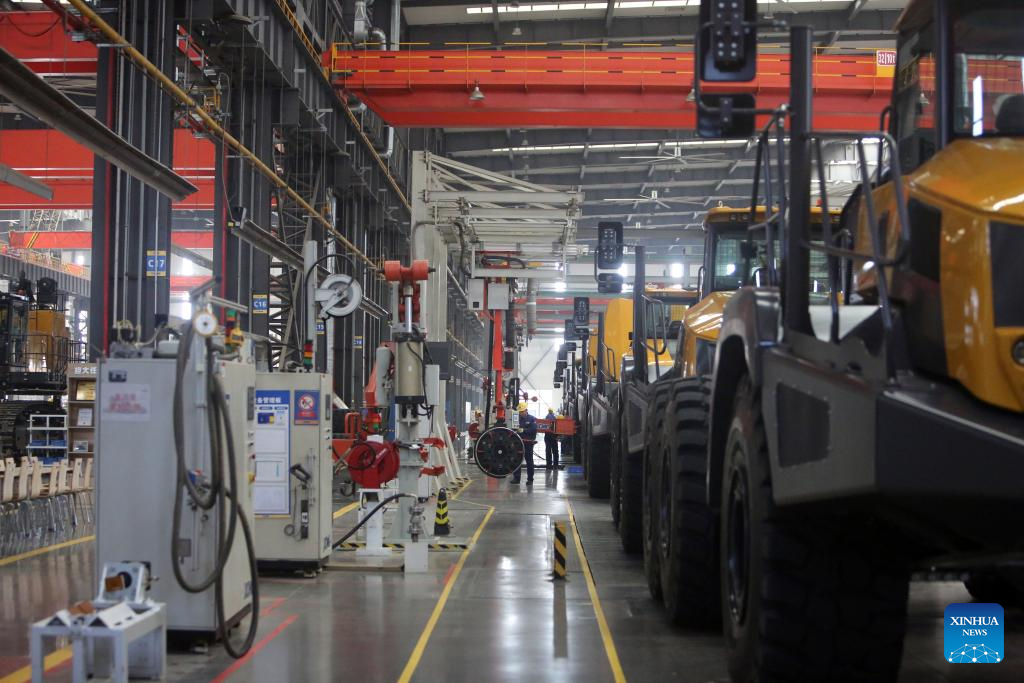 Staff members work at Xuzhou Construction Machinery Group Co., Ltd. (XCMG) in Xuzhou City, east China's Jiangsu Province, on March 25, 2026. In recent years, Jiangsu has focused on developing new quality productive forces, pursuing high-end, intelligent and globalized development, using advanced manufacturing to power high-quality economic growth.