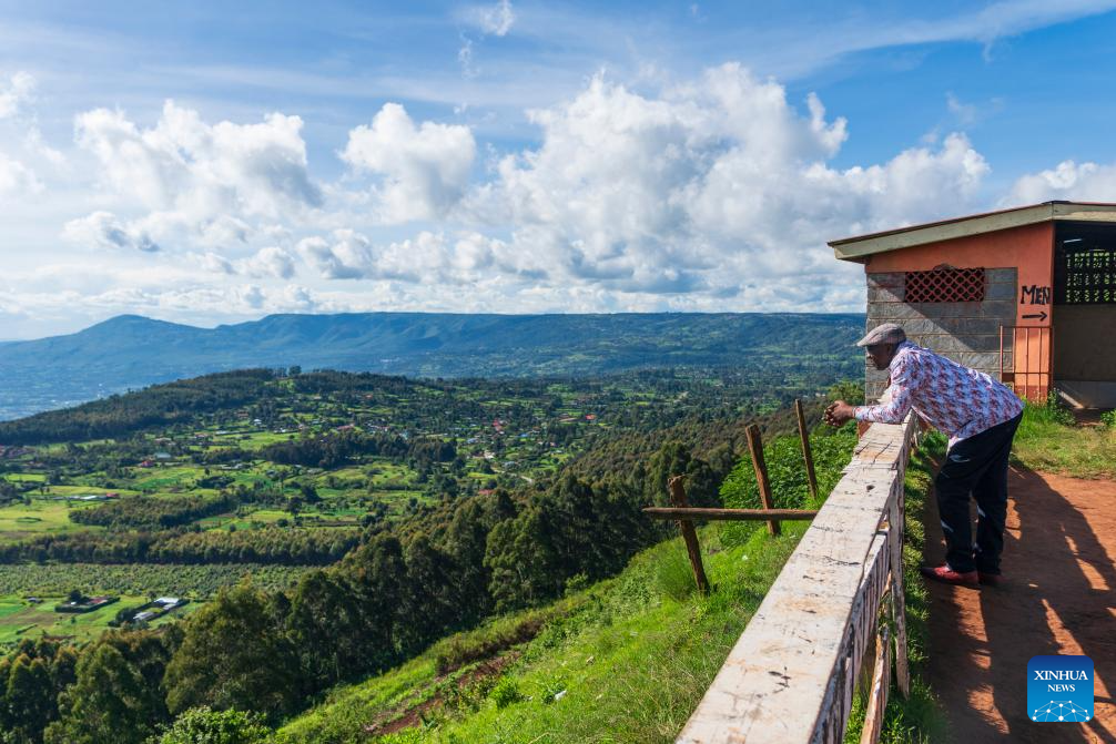 A tourist enjoys the scenery of the Great Rift Valley at a viewing platform in Kiambu County, Kenya, April 21, 2026. The Great Rift Valley, located in eastern Africa, is one of the largest and most prominent continental rift systems in the world and is often referred to as the "scar of the Earth."