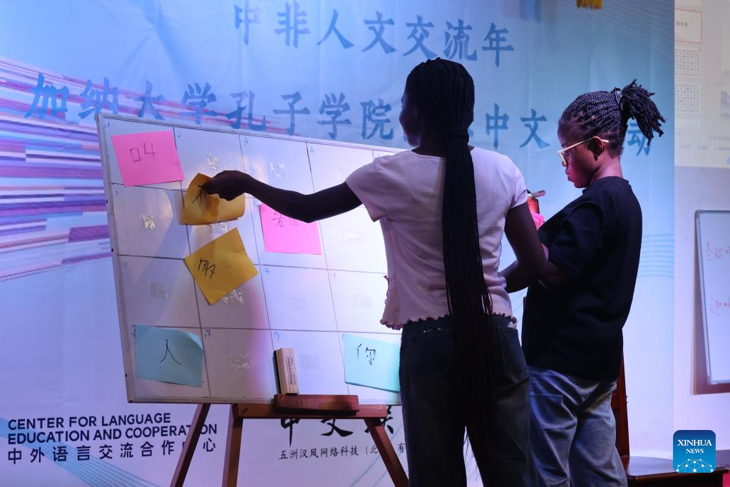 Students take the Chinese character dictation competition during a celebration event marking International Chinese Language Day, held by the Confucius Institute at the University of Ghana (CIUG), in Accra, Ghana, on April 20, 2026. (Photo by Seth/Xinhua)