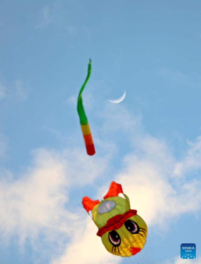 A waxing crescent moon is seen in the sky over Zhaodong, northeast China's Heilongjiang Province, April 21, 2026. (Photo by Liu Dapeng/Xinhua)
