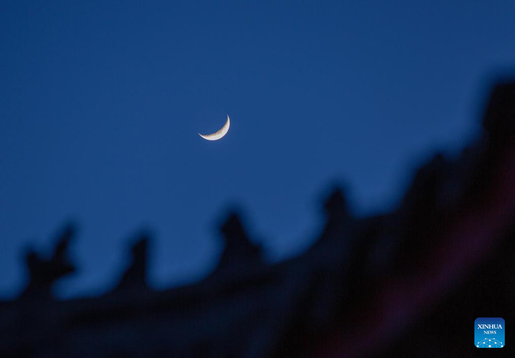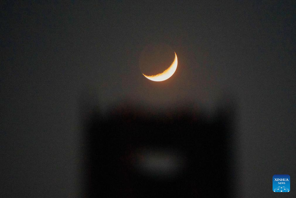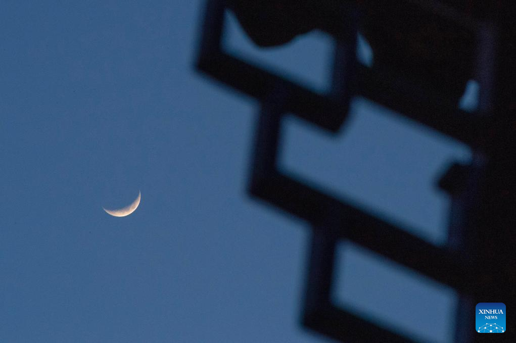 A waxing crescent moon is seen in the sky over Harbin, northeast China's Heilongjiang Province, April 21, 2026. (Photo by Yuan Yong/Xinhua)
