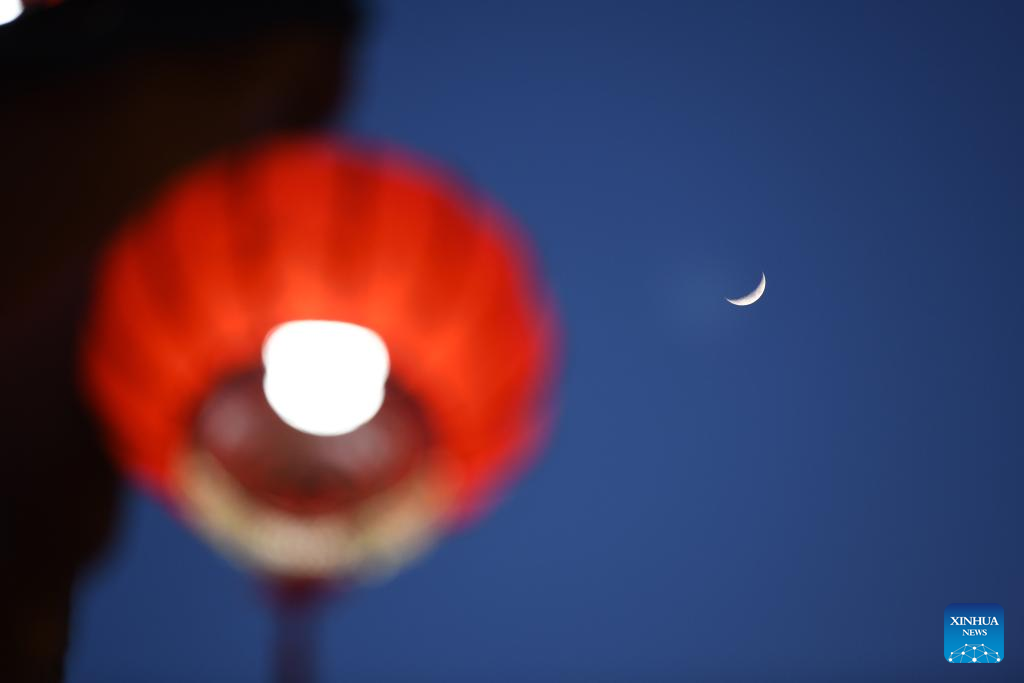 A waxing crescent moon is seen in the sky over Suihua, northeast China's Heilongjiang Province, April 21, 2026. (Photo by Liu Huapeng/Xinhua)