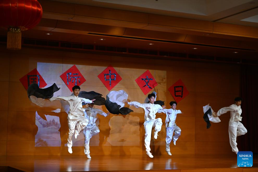 Actors perform Chinese martial arts in celebration of the International Chinese Language Day at the Chinese Embassy in Washington, D.C., the United States, April 21, 2026. (Xinhua/Li Rui)