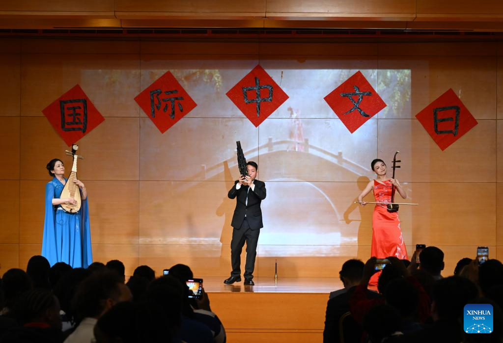 Artists perform Chinese folk music in celebration of the International Chinese Language Day at the Chinese Embassy in Washington, D.C., the United States, April 21, 2026. (Xinhua/Li Rui)