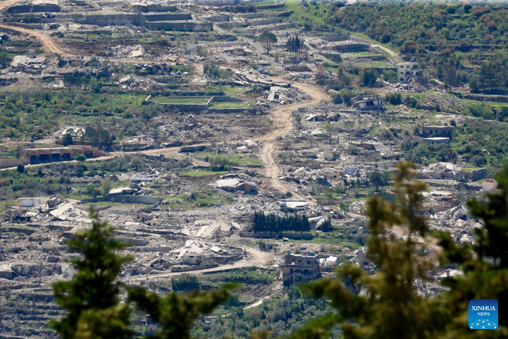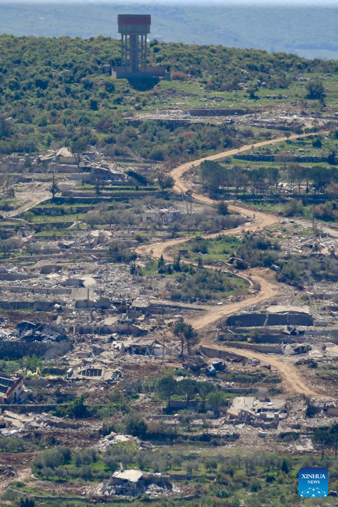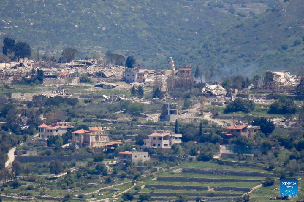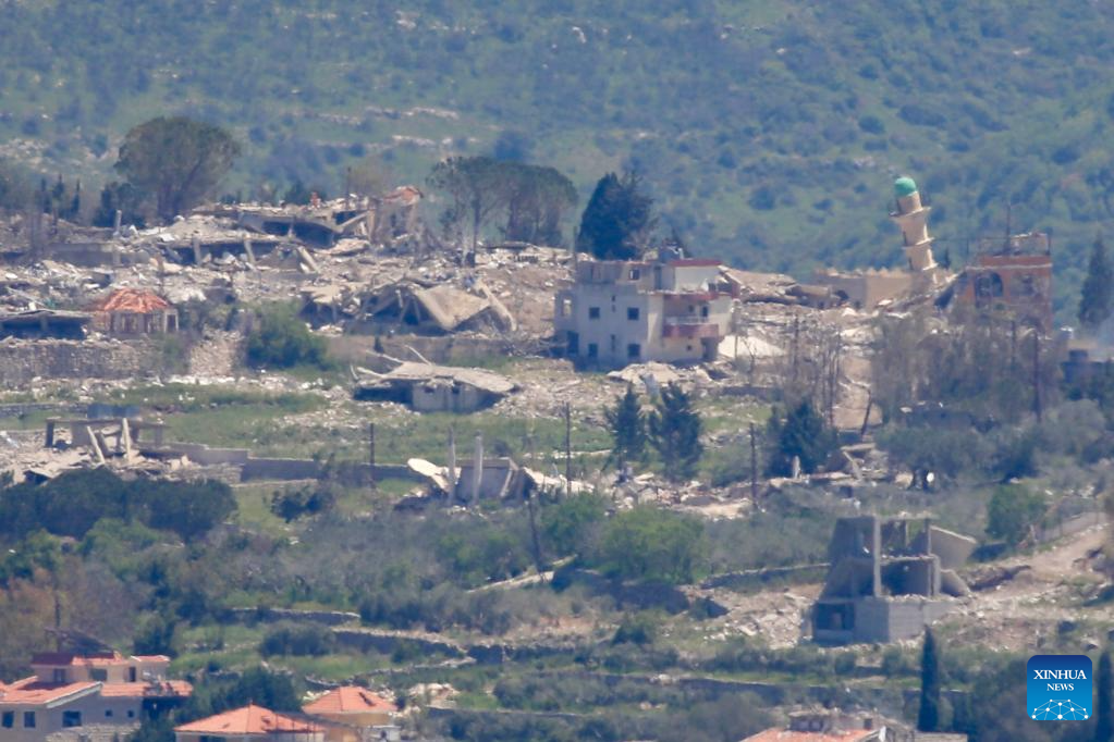 Photo taken from Yater on April 22, 2026 shows destroyed houses in the village of Beit Lif near the southern border of Lebanon. (Photo by Ali Hashisho/Xinhua)