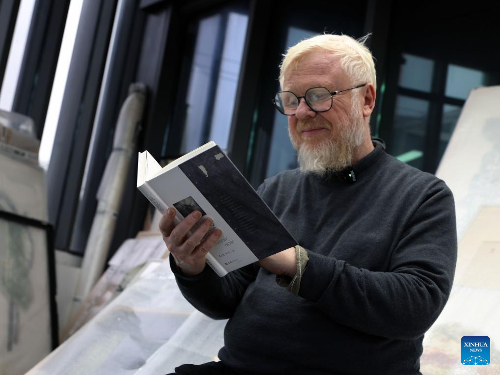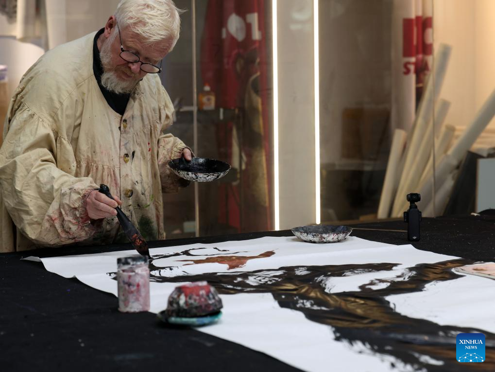 Benoît Vermander paints at a studio in Shanghai, east China, April 22, 2026. Benoît Vermander, a French scholar born in 1960, is not only a professor and doctoral supervisor at the School of Philosophy of Fudan University but also a painter, poet, and cultural ambassador whose life has become a dialogue between East and West.