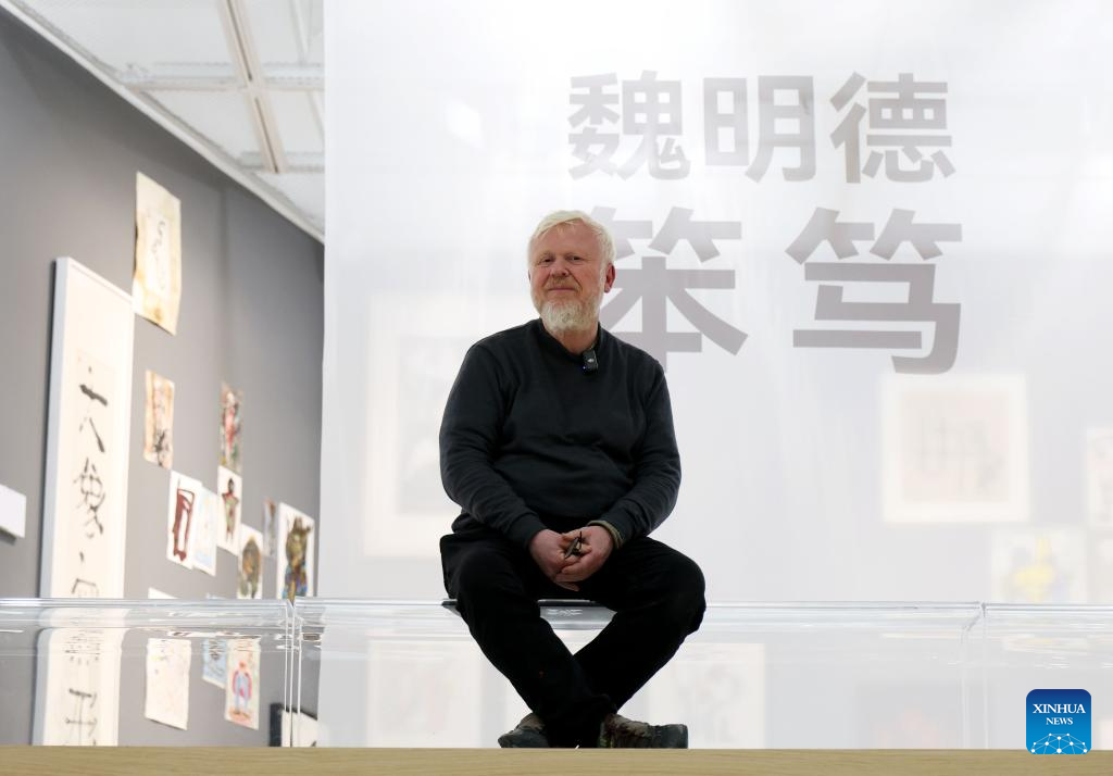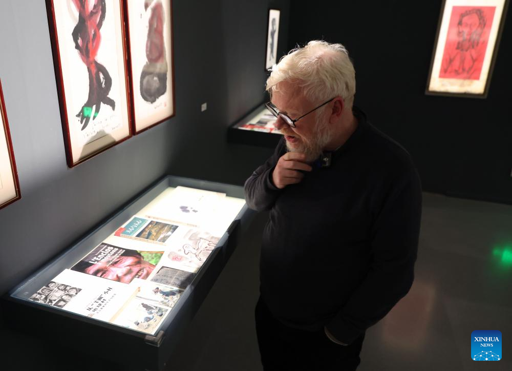 Benoît Vermander is pictured at the site of his own exhibition at a museum in Fudan University, east China's Shanghai, April 22, 2026. (Xinhua/Liu Ying)