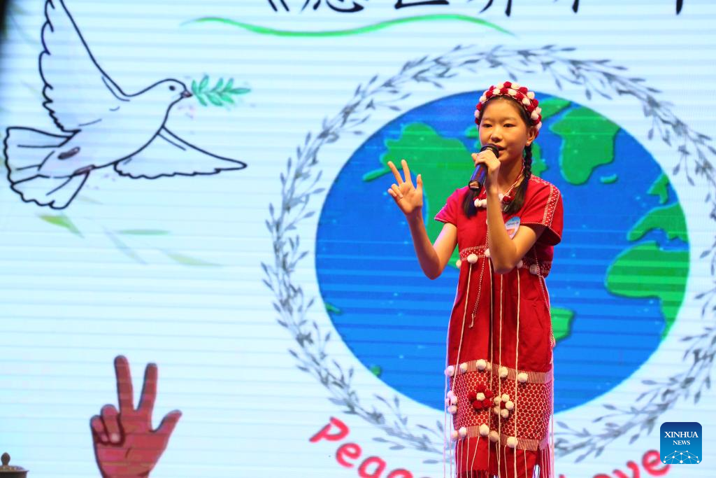 YANGON, April 26 (Xinhua) -- Children gathered at the China Cultural Center in Yangon on Sunday for the final round of the 9th Chinese Language recitation competition, showcasing their language skills and confidence on stage.