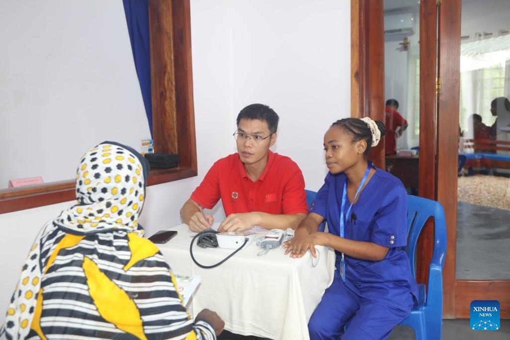 DAR ES SALAAM, April 26 (Xinhua) -- The 35th Chinese medical team in Tanzania's Zanzibar on Saturday conducted a free medical outreach activity in the Jambiani community.