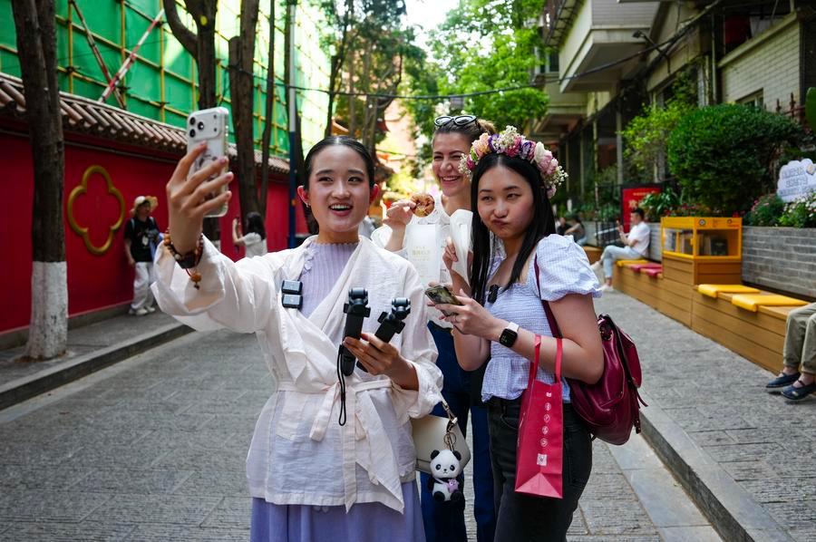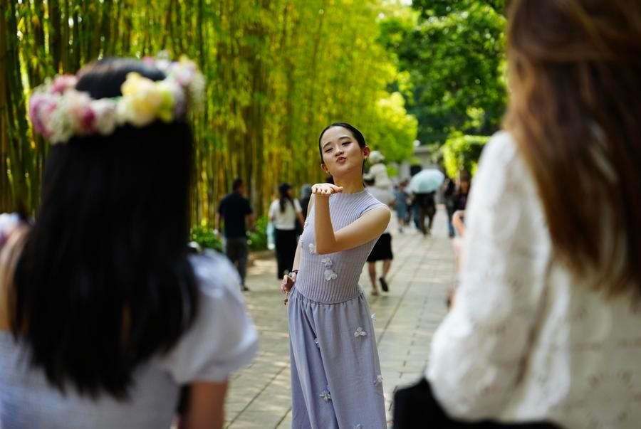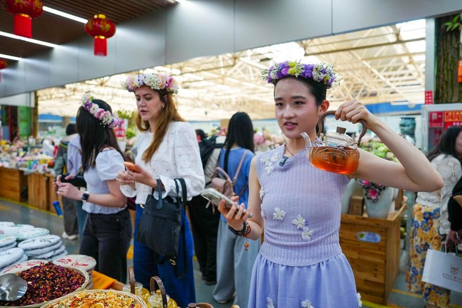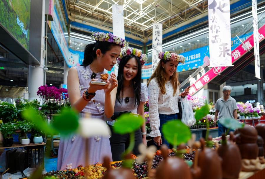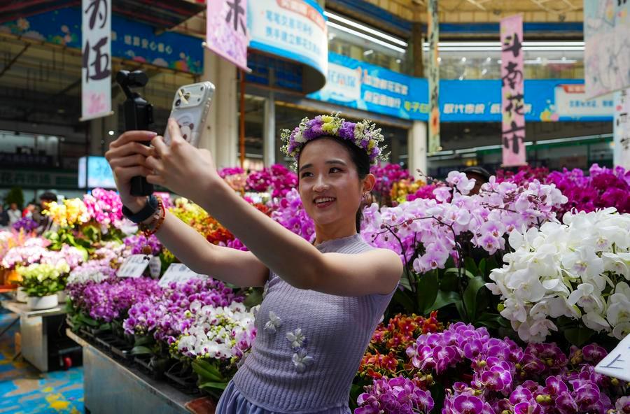 Chinese American Sherry Zhu takes a selfie in front of flowers at Dounan Flower Market in Kunming, southwest China's Yunnan Province, April 24, 2026. (Xinhua/Chen Xinbo)Chinese American Sherry Zhu (L) and her friends take a selfie while tasting traditional flower cakes by Cuihu Lake in Kunming, southwest China's Yunnan Province, April 24, 2026. (Xinhua/Chen Xinbo)Chinese American Sherry Zhu (L) and her friends visit Dounan Flower Market in Kunming, southwest China's Yunnan Province, April 24, 2026. (Xinhua/Chen Xinbo)