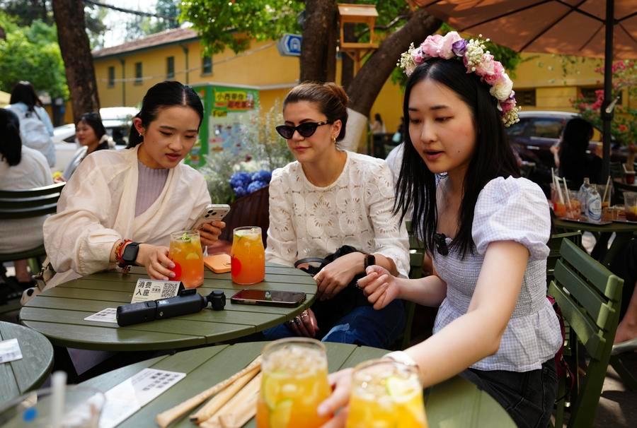Chinese American Sherry Zhu (R) and her friends visit Dounan Flower Market in Kunming, southwest China's Yunnan Province, April 24, 2026. (Xinhua/Chen Xinbo)Chinese American Sherry Zhu (L) and her friends taste modern tea drinks by Cuihu Lake in Kunming, southwest China's Yunnan Province, April 24, 2026. (Xinhua/Chen Xinbo)Chinese American Sherry Zhu's friends buy traditional flower cakes by Cuihu Lake in Kunming, southwest China's Yunnan Province, April 24, 2026. (Xinhua/Chen Xinbo)Chinese American Sherry Zhu visits Cuihu Lake park in Kunming, southwest China's Yunnan Province, April 24, 2026. (Xinhua/Chen Xinbo)