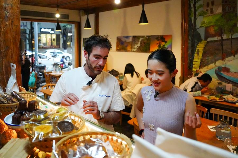 Chinese American Sherry Zhu (R) chats with Vincent at his restaurant in Kunming, southwest China's Yunnan Province, April 24, 2026. (Xinhua/Chen Xinbo)Chinese American Sherry Zhu (R) chats with Vincent at his restaurant in Kunming, southwest China's Yunnan Province, April 24, 2026. (Xinhua/Chen Xinbo)French chef Vincent introduces food to Chinese American Sherry Zhu (R) and her friends at his restaurant in Kunming, southwest China's Yunnan Province, April 24, 2026. (Xinhua/Chen Xinbo)