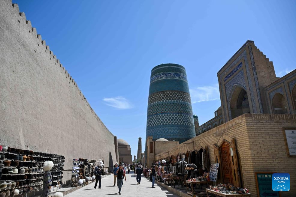 People visit the ancient city of Khiva, Uzbekistan, on April 27, 2026. As one of the ancient cities situated along the Silk Road, Khiva has been a center of education, science and culture, and served as a cradle of civilizations spanning millennia, with Ichan Kala, the inner city of the ancient oasis of Khiva, added to the UNESCO World Heritage List in 1990. (Xinhua/Li Renzi)