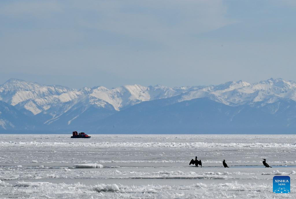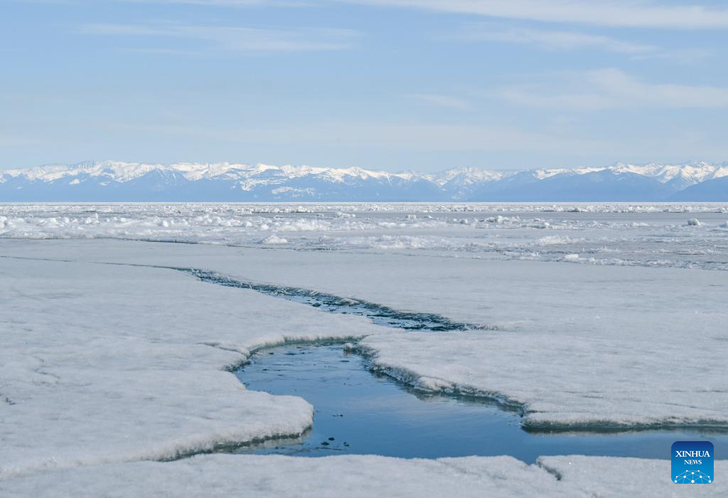 This photo taken on April 28, 2026 shows a view of Lake Baikal in Listvyanka, Russia. (Xinhua/Hao Jianwei)