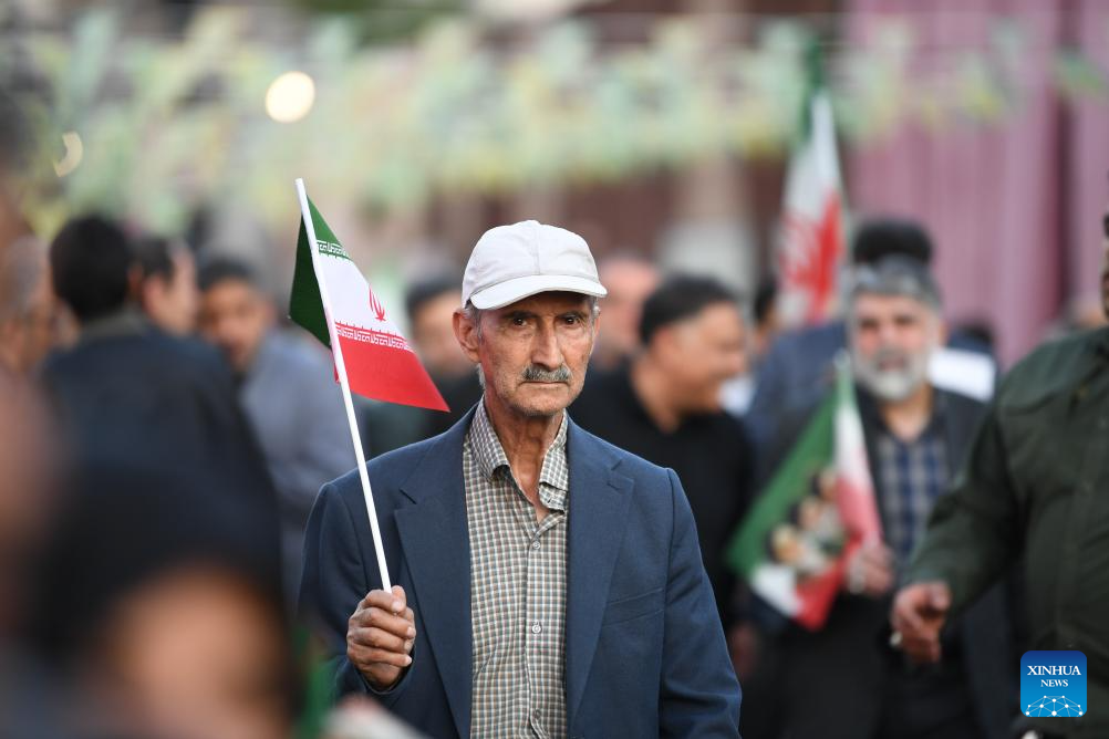 TEHRAN, April 29 (Xinhua) -- Tens of thousands of Iranians took to the streets on Wednesday in mass rallies across the country to pledge allegiance to Supreme Leader Mojtaba Khamenei and demonstrate national unity.