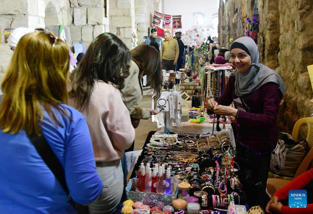 Visitors shop for handmade accessories and crafts at an exhibition in Damascus, Syria, April 29, 2026. The 10-day exhibition features a wide range of traditional products reflecting Syria's cultural identity. (Photo by Ammar Safarjalani/Xinhua)