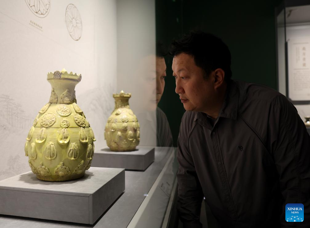 A visitor takes a photo of an exhibit at Shanxi Museum in Taiyuan, north China's Shanxi Province, April 29, 2026. (Xinhua/Yang Chenguang)