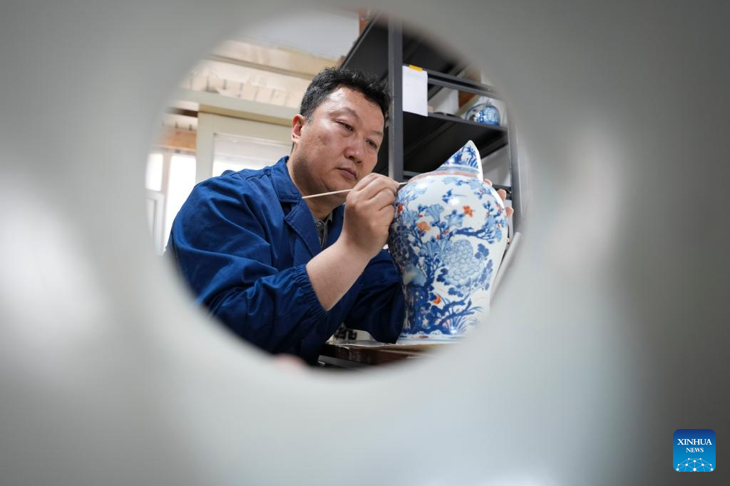 Xu Kai restores a cultural relic at a studio in Taiyuan, north China's Shanxi Province, April 29, 2026. Xu Kai is a ceramic cultural relics restoration specialist at Shanxi Museum. With 27 years of experience in the field, the 48-year-old has breathed new life into countless precious artifacts, ranging from Neolithic pottery to official kiln porcelain of the Ming (1368-1644) and Qing (1644-1911) dynasties.