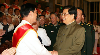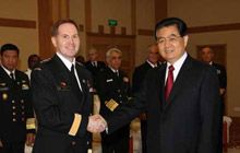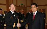 China would never seek hegemony, nor would it turn to military expansion or arms races with other nations, Chinese President Hu Jintao said during a meeting with heads of 29 foreign navy delegations.