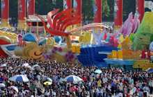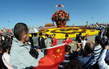 Tourists crowds to watch floats at Tian'anmen Square