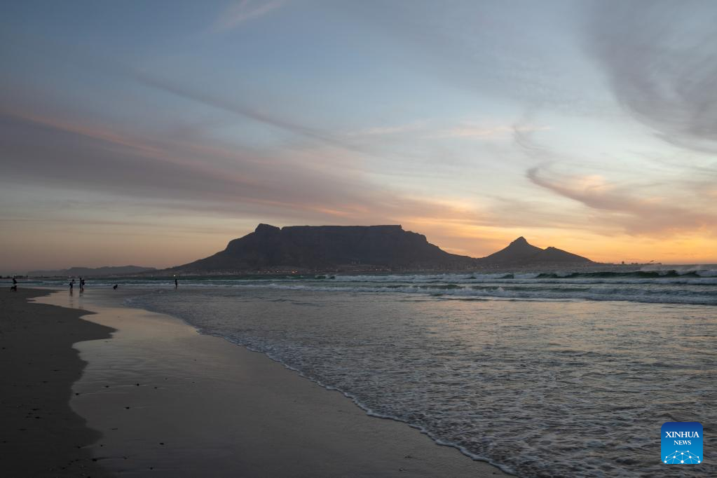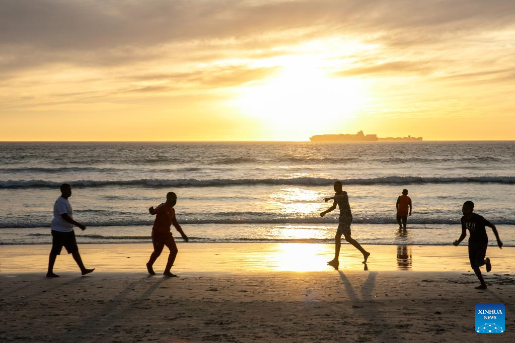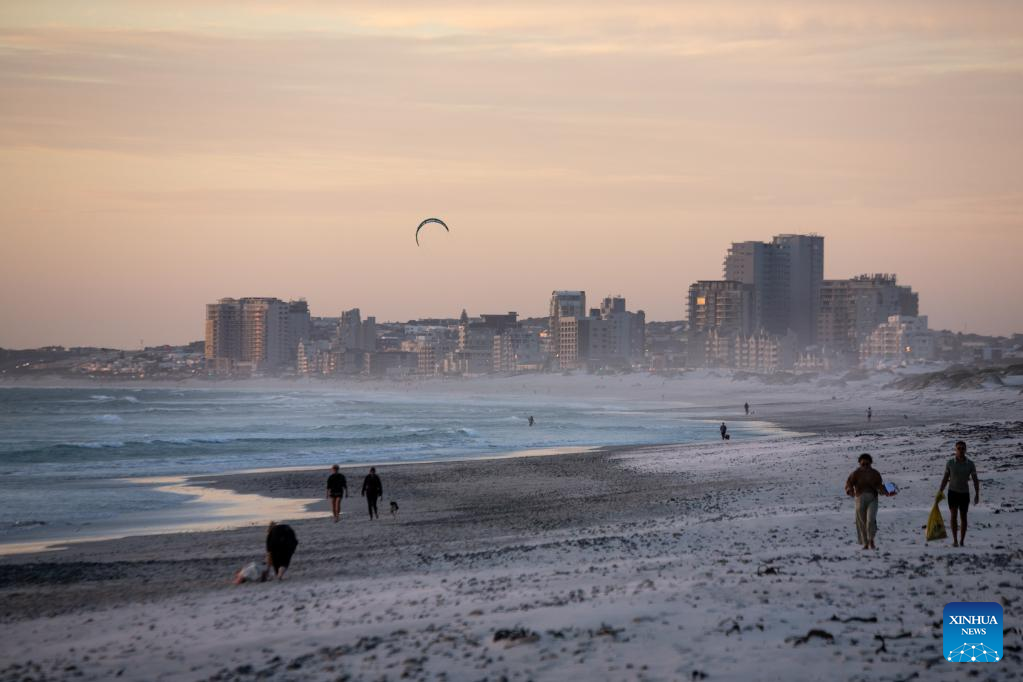 People have fun on Sunset Beach in Cape Town, South Africa-Xinhua