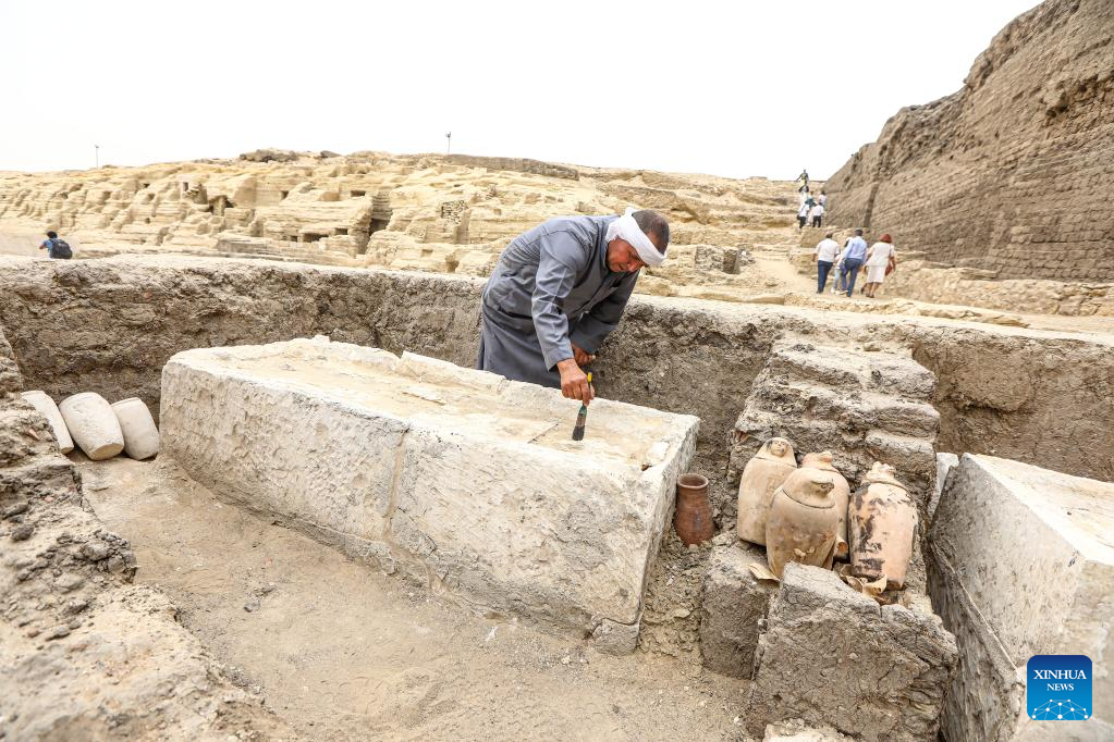 CAIRO, May 27 (Xinhua) -- Egypt announced on Saturday the discovery of two ancient embalming workshops for humans and animals along with two tombs and a collection of artifacts in Saqqara necropolis, south of the capital Cairo.