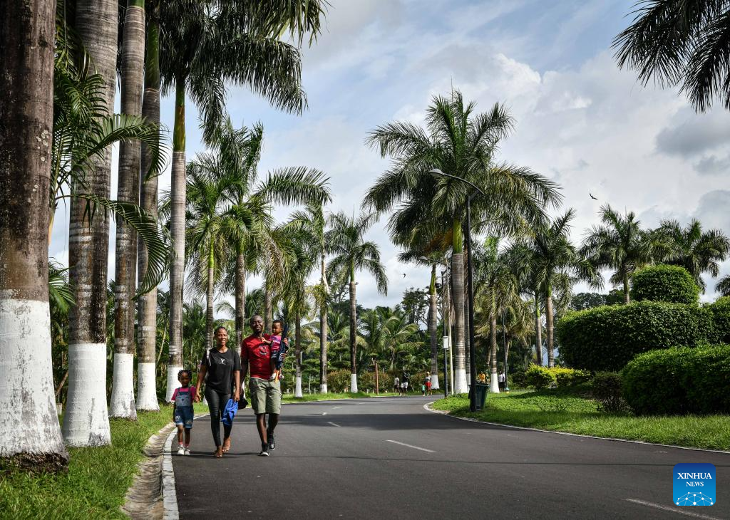 Visitors stroll at Malabo National Park in Malabo, the capital of Equatorial Guinea, May 19, 2024. Constructed by the China Road and Bridge Corporation (CRBC), Malabo National Park, one of the largest city parks in Central Africa, was officially put into operation in 2016. The construction of the park has brought numerous job opportunities for local people and enriched the cultural life of Equatorial Guinea. (Xinhua/Han Xu)