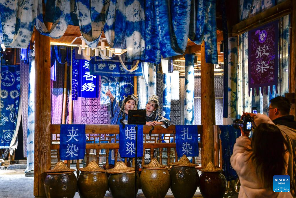 Tourists pose for photos at the Zhaoxing Dong Village in Liping County of Qiandongnan Miao and Dong Autonomous Prefecture, southwest China's Guizhou Province, March 17, 2025. Located in Liping County of Qiandongnan Miao and Dong Autonomous Prefecture, Zhaoxing Dong Village is home to over a thousand households of the Dong ethnic group. The traditional architectural style and rich cultural heritage of the Dong ethnic group are well-preserved.